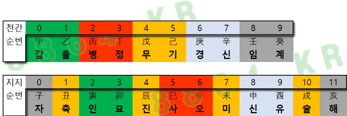 천간은 10글자, 지지는 12글자이니